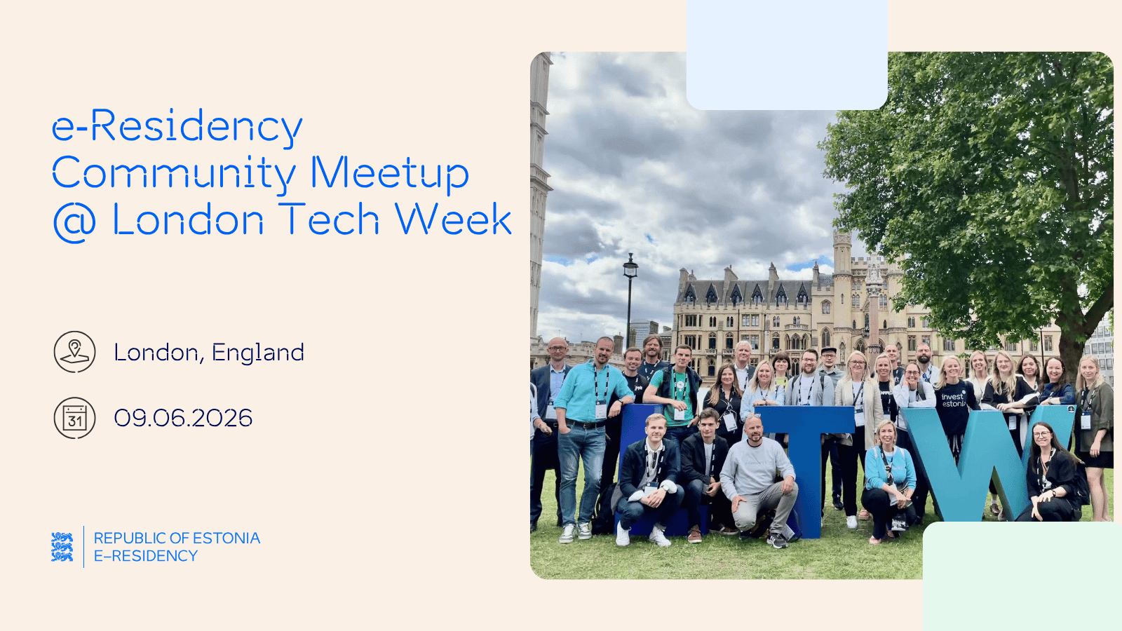 🚀Join the e‑Residency Community meetup during London Tech Week on 9 June at the Estonian Embassy! This community meetup brings together current and future e‑residents, founders and entrepreneurs who are building global companies through Estonia.