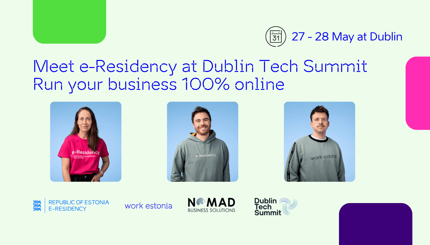 We are heading to Dublin Tech Summit to connect with founders, professionals and builders shaping the future of tech. Come and meet the e-Residency and Work in Estonia teams to explore how Estonia supports global talent and entrepreneurs.